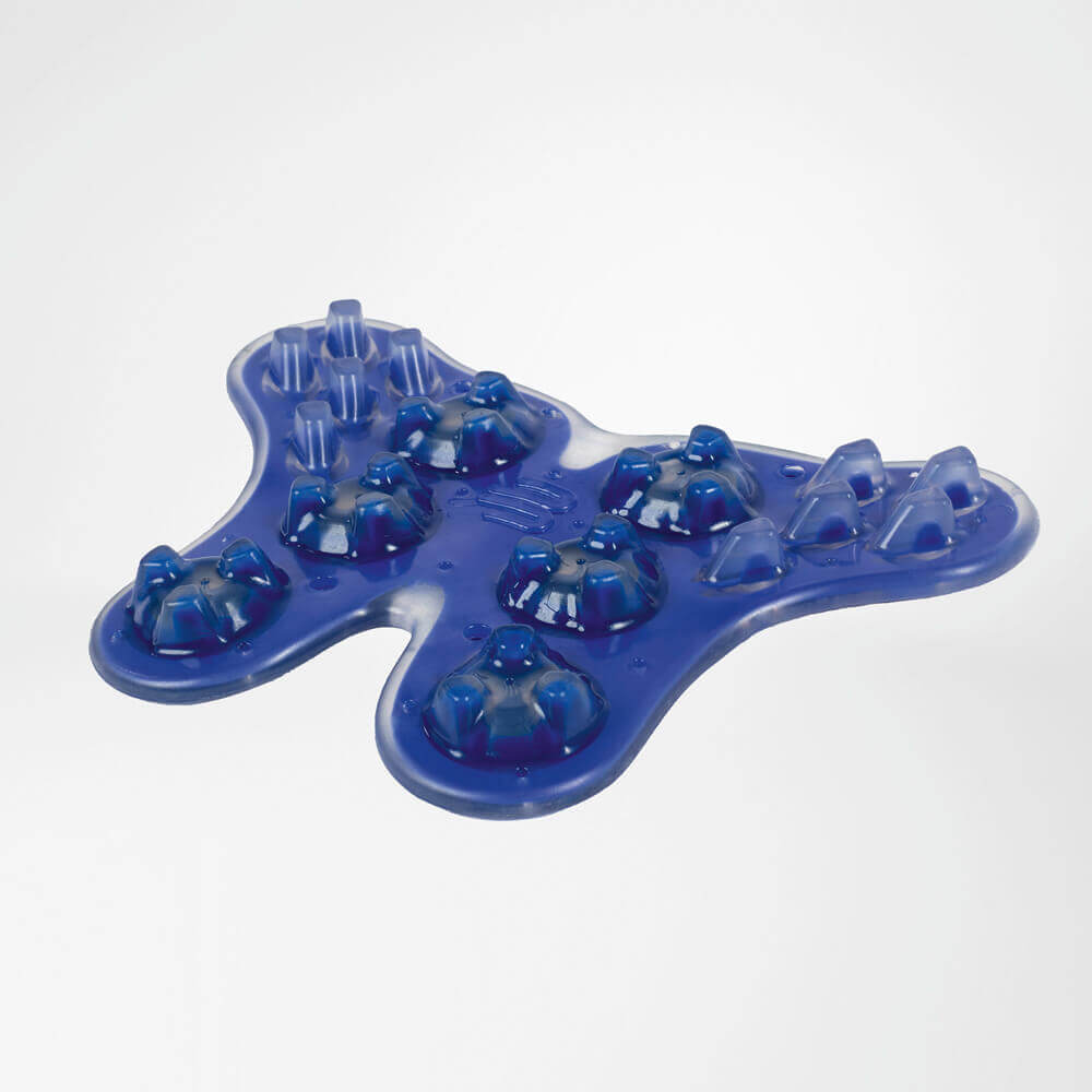 La LumboTrain favorise la stabilisation dans une posture du corps bien droite grâce à sa forme anatomique et sa transmission de force. De plus, un coussinet de massage triangulaire spécial avec 26 picots dans la zone du bas du dos permet un agréable massage utilisant différentes variations de pression. Il soulage donc les douleurs de manière ciblée dans le bas du dos et contrecarre les tensions.