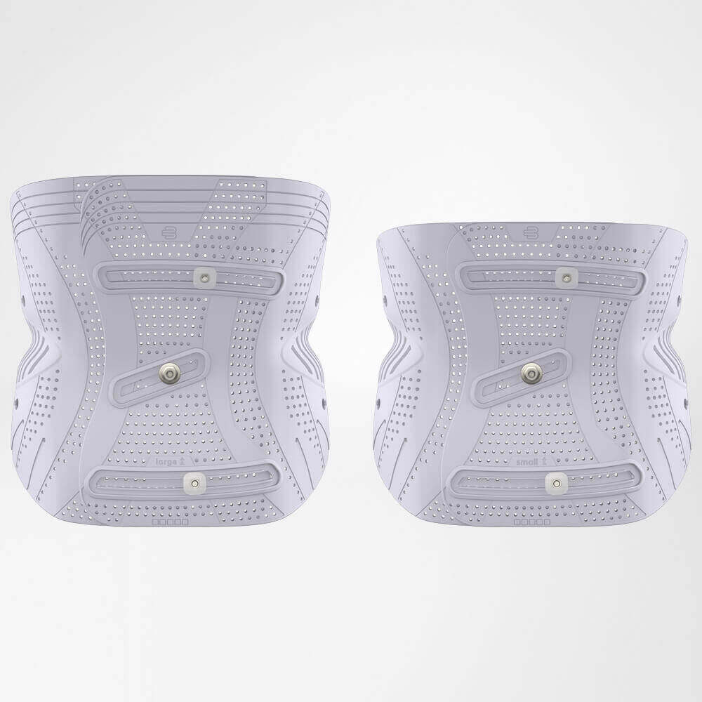 Une coque en plastique entourant le tronc renforce la stabilisation. Elle se compose de deux moitiés qui peuvent être glissées l'une dans l'autre. Elle peut donc être parfaitement adaptée à la forme de votre corps. Pour un plus grand confort lors du port, elle dispose de multiples perforations et offre de la sorte une régulation optimale de la chaleur.