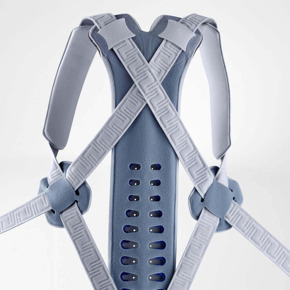 Elle se caractérise par son triple effet. Tout d'abord, elle redresse le haut du corps à l'aide d'une longue baleine en aluminium qui suit le cours de la colonne vertébrale. Elle soulage et corrige ainsi les vertèbres lombaires et thoraciques et contrecarre le dos rond. Deuxièmement, elle limite les mouvements de bascule latéraux. Troisièmement, elle donne au corps des impulsions de redressement et vous rappelle constamment, inconsciemment, d'adopter une posture saine de votre propre chef. De cette façon, les muscles de votre tronc conservent leur force aussi longtemps que possible.