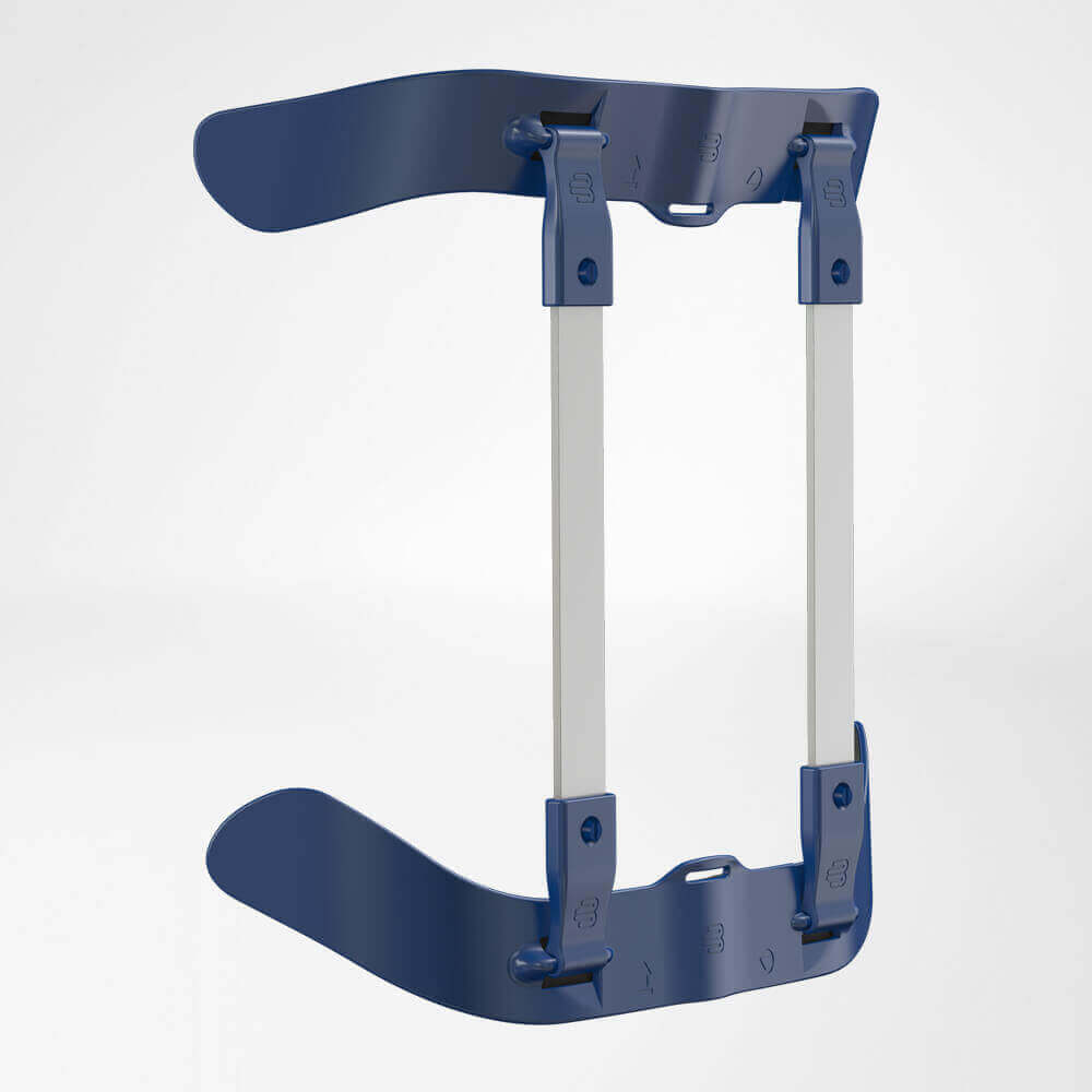 Un cadre de transfert de force avec deux renforts verticaux et deux renforts horizontaux contrebalance votre cambrure dans la zone du bas du dos. Il protège ainsi particulièrement la partie postérieure des vertèbres des sollicitations. Les renforts horizontaux s'adaptent à la forme du corps. Cela garantit un maintien confortable du cadre.